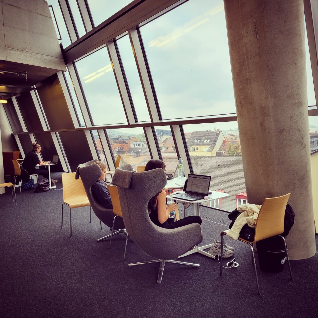 Pe mine personal m-a impresionat biblioteca: clădirea de sticlă de mai sus. Are 5 etaje și este deschisă în fiecare zi (L-D) de la 7.00-24.00. Are inclusiv niște fotolii extrem de comode care se lasă pe spate, în care te poți pierde în lectură, iar vederea de sus asupra orașului este superbă.