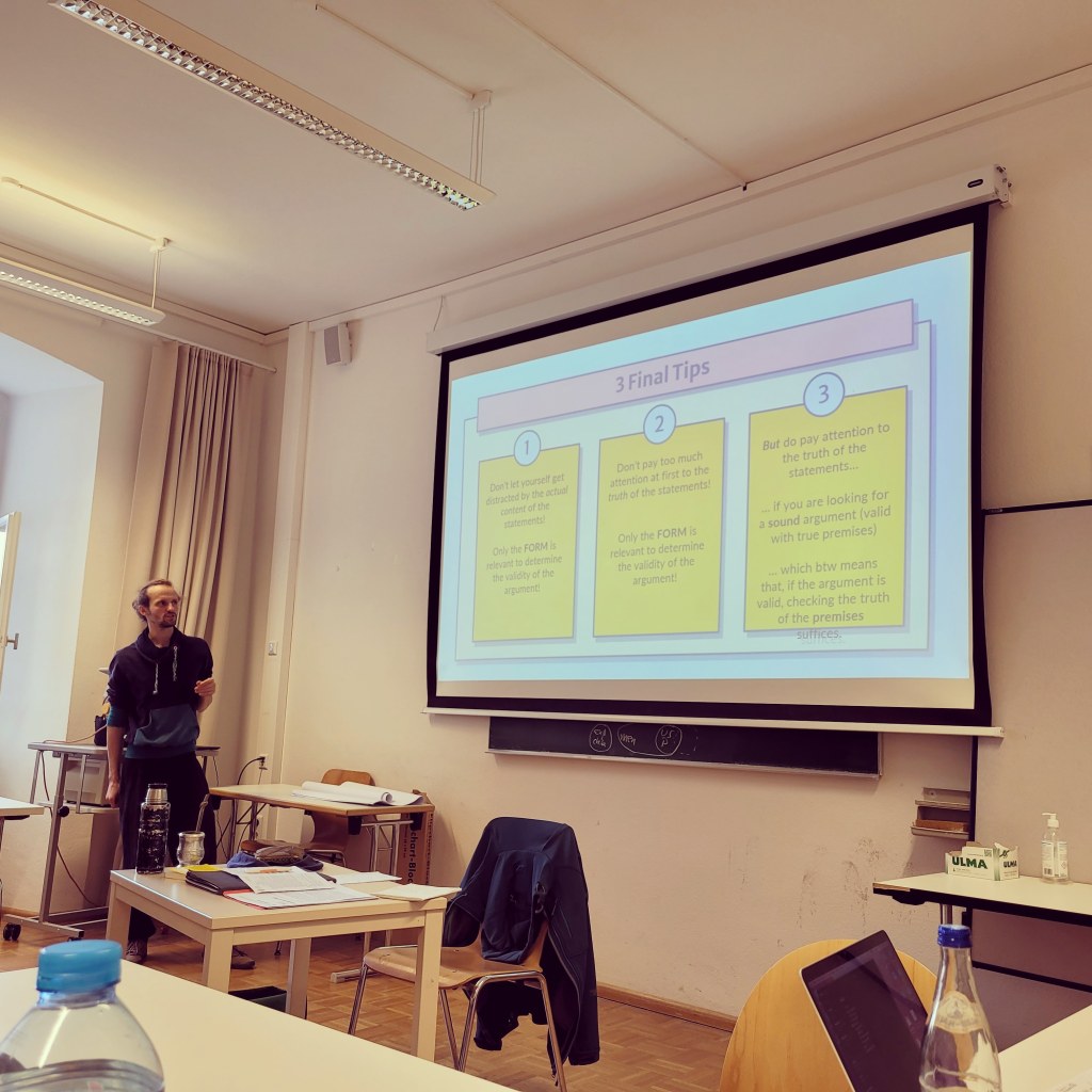 Un alt lucru care mi s-a părut foarte frumos la cursurile de filosofie a fost faptul că profesorul: Friedrich Vogelmann, încuraja în mod conștient fetele să vorbească, sau se străduia să mențină un echilibru între intervențiile fiecărui gen, spunând că de obicei bărbații sunt cei care intervin mai des și vrea să încurajeze și fetele să își facă auzită vocea. De asemenea, o profesoară, Sofya Kartalova, ne-a întrebat la începutul cursului care sunt pronumele noastre și pe ce nume vrem să ni se adreseze și a respectat asta pe parcursul cursurilor. Detalii care contează, din punctul meu de vedere.
